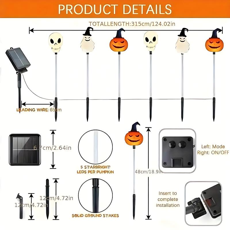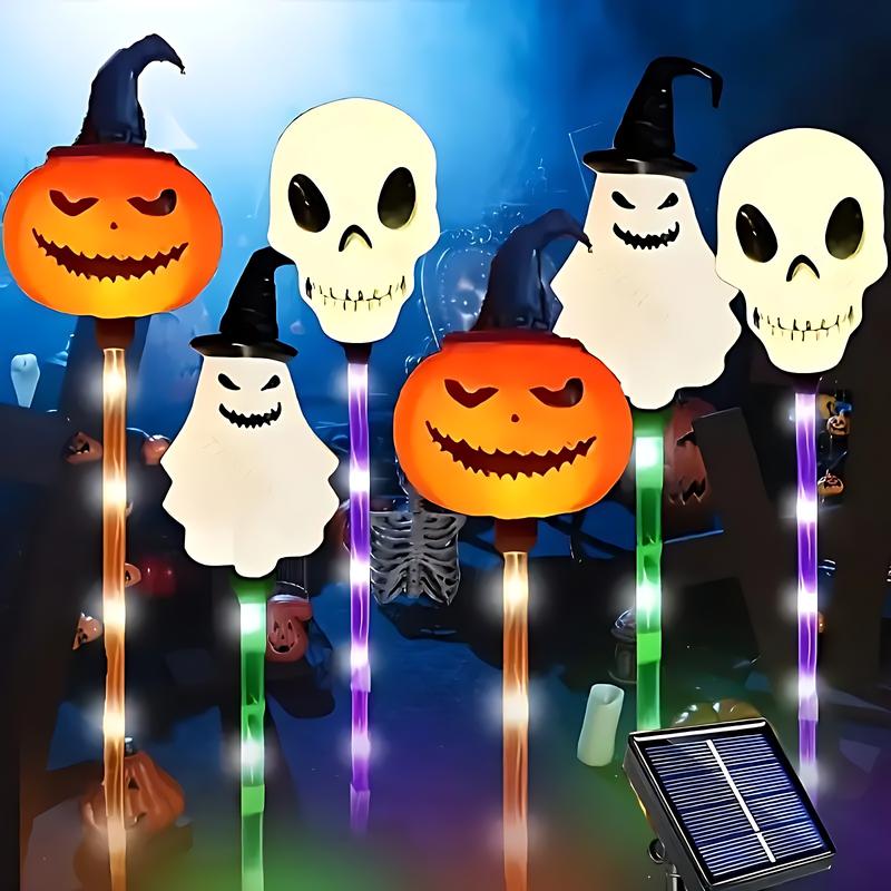 Set of 6 Solar LED Garden Lights - Halloween Themed Pumpkin, Skeleton, and Ghost Designs for Seasonal Decoration and Outdoor Use